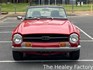 To finish the restored Triumph the cabin was completely re-trimmed, now with high-backed Mazda MX-5 sports seats, a new soft-top and tonneau. The newly finished woodgrain dashboard is complemented by both a period correct MotoLita wooden steering wheel and a matching wooden gear knob.